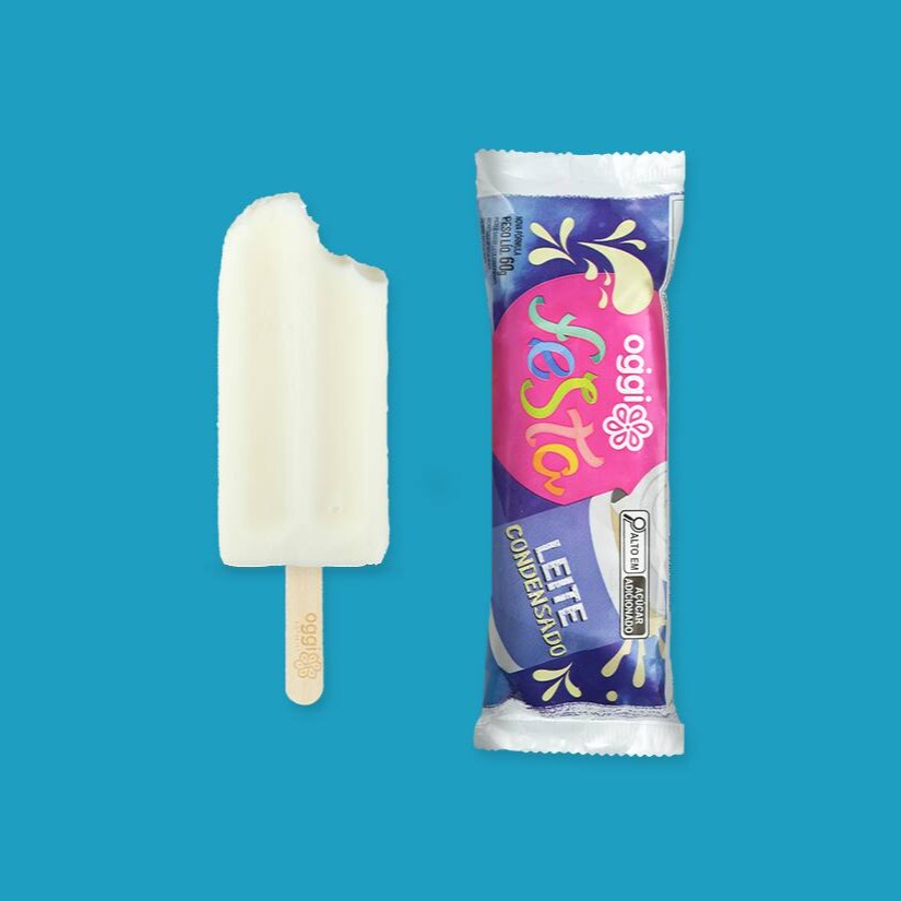 Sabor doce de beijinho, uma delícia brasileira. Picolé sabor leite condensado com flocos de coco.