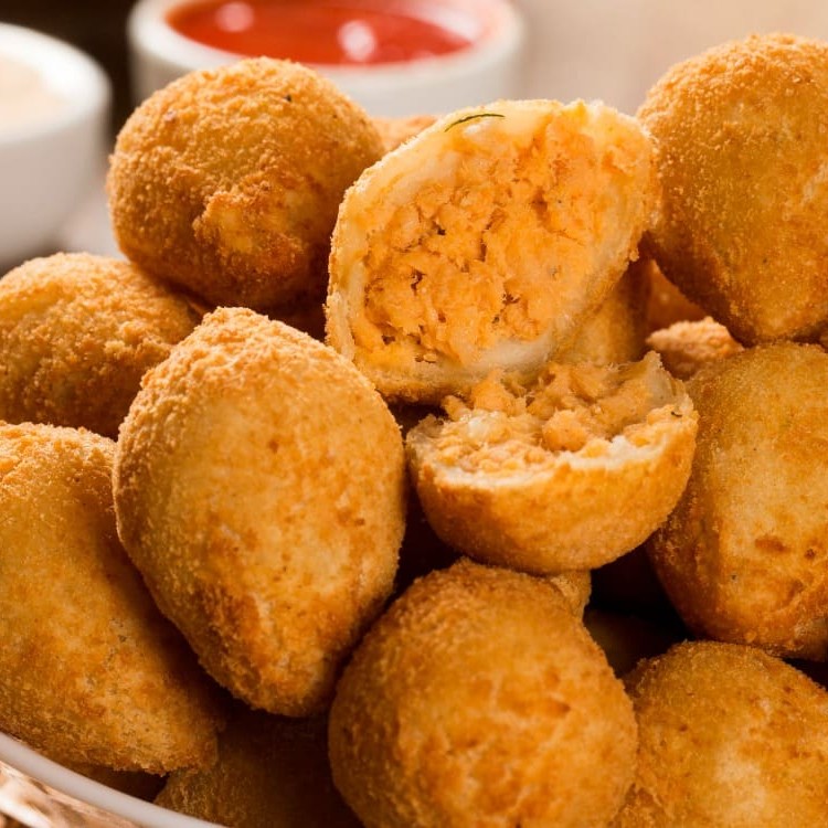 Deliciosa coxinha com frango desfiado, temperado e envolto numa massa crocante. Irresistível!