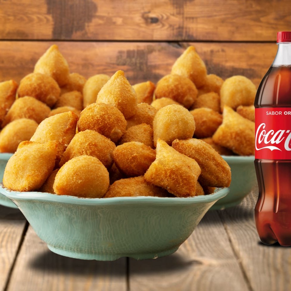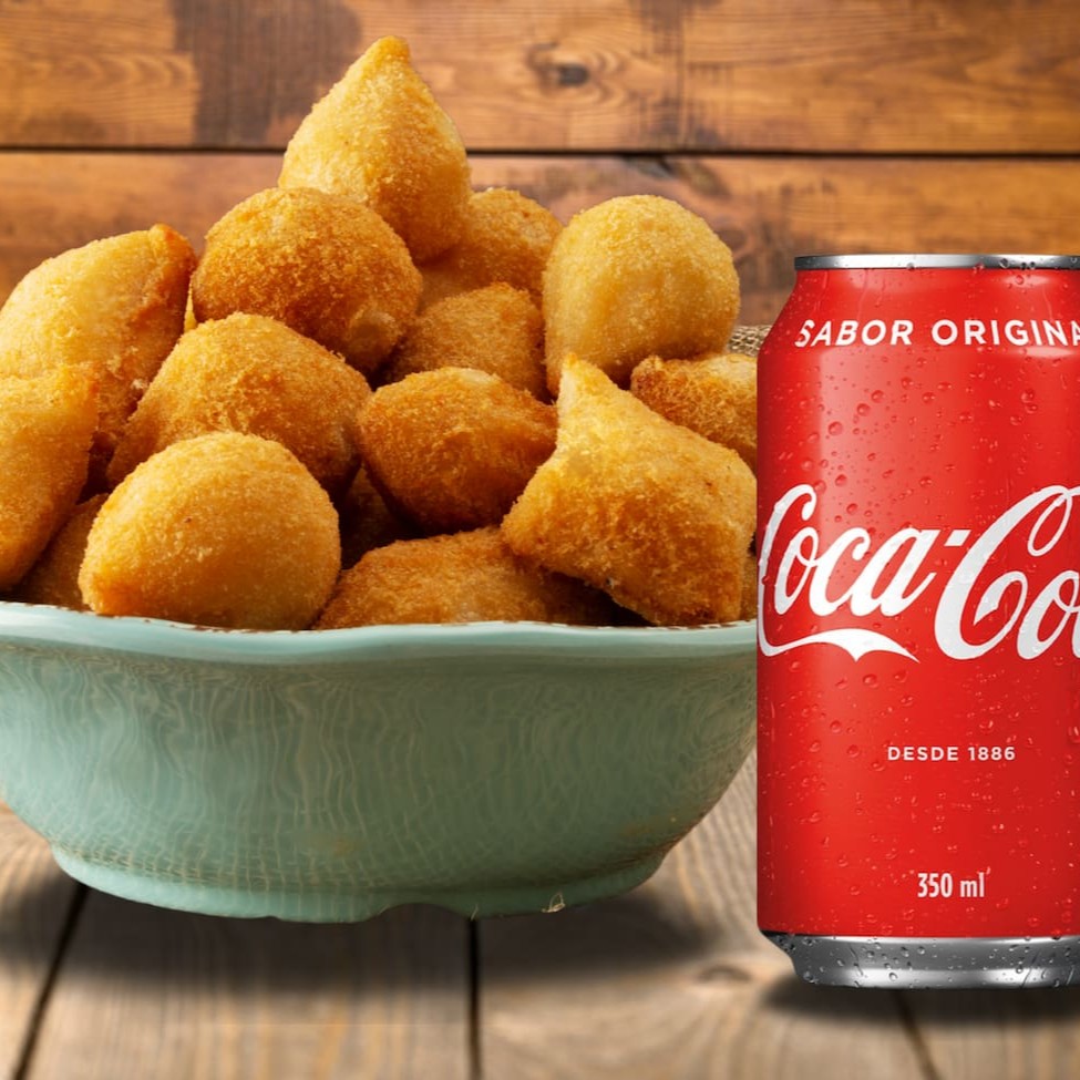 20 unidades de pura felicidade! Coxinha, quibe, bolinha de queijo e mais delícias crocantes, acompanhadas de uma gelada Coca-Cola 350ml. O combo perfeito para matar a fome com estilo!