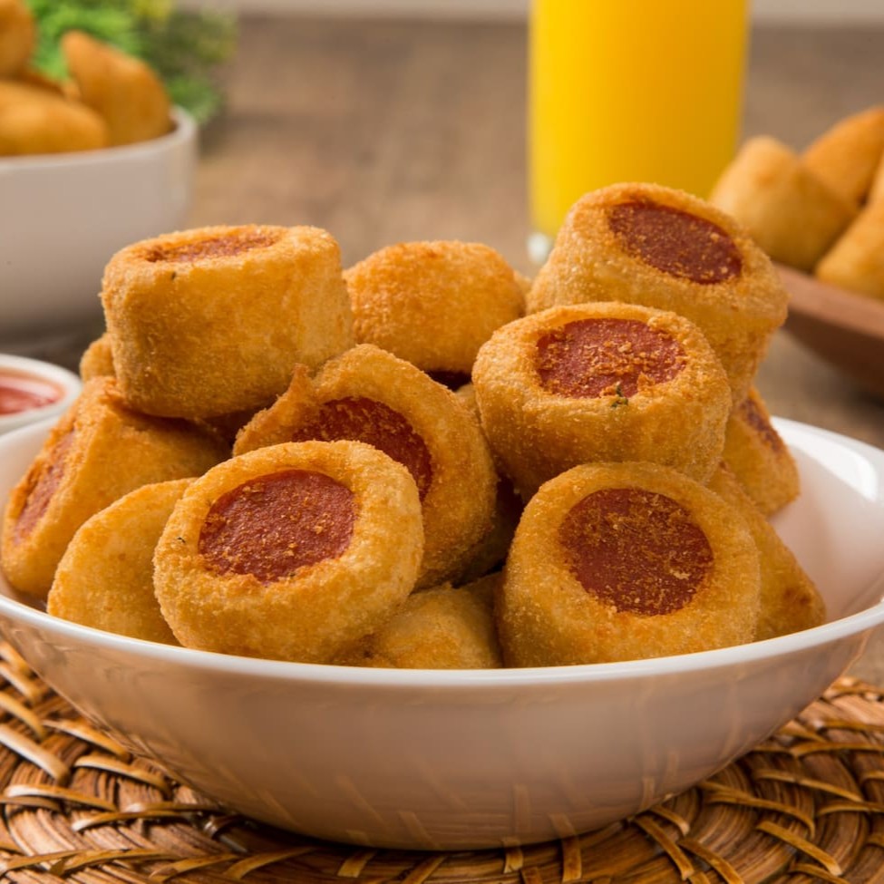 Salsicha envolta numa massa crocante. Praticidade e sabor em cada mordida!