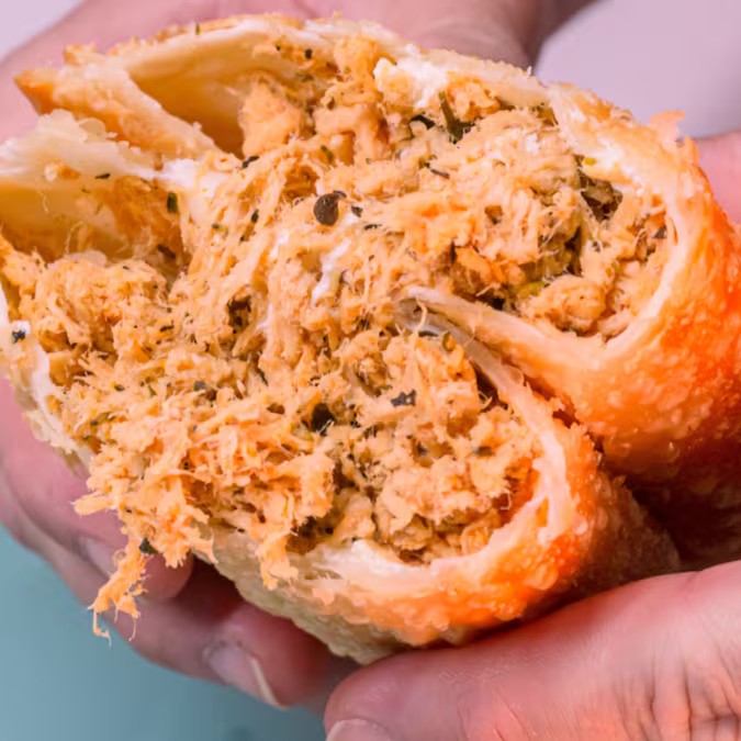 Carne do sol desfiada, mussarela derretida, requeijão cremoso e milho verde
