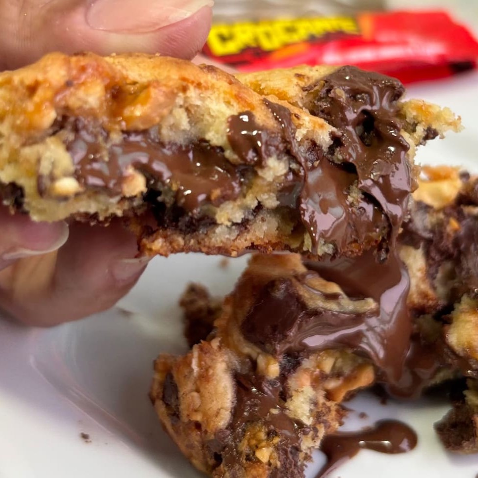 Uma releitura do clássico bombom crocante que todo mundo conhece. Massa Tradicional macia, com amendoim caramelizado crocante e chocolate, entregando aquele sabor marcante e nostálgico em formato de cookie. Intenso, crocante e danado de bom.