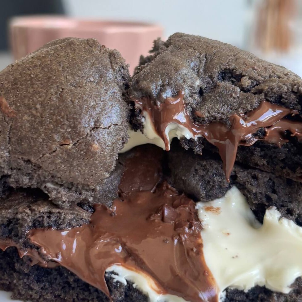 Cookie de massa de cacau dark, intenso e marcante, com pedaços generosos de chocolate branco e meio amargo, ambos nobres. Uma combinação equilibrada entre o doce e o amargo, para quem aprecia um sabor profundo e sofisticado em cada mordida.