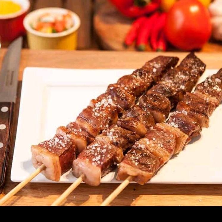 Espetinho de 110gr a 120gr de Picanha Bovina.