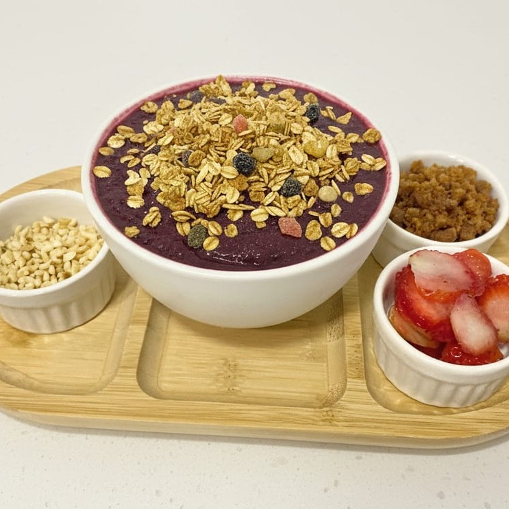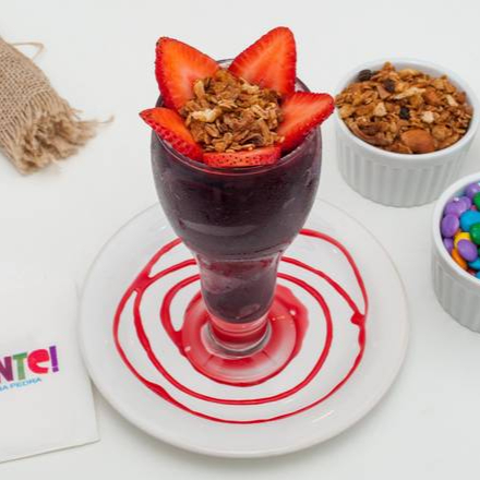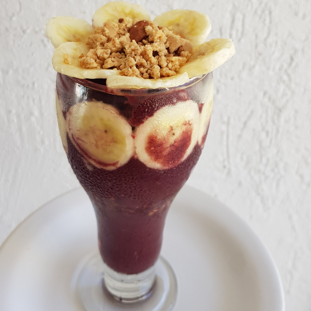 Açaí puro ou batido com opções de frutas, montado com toppings a sua escolha (Os toppings são servidos em camadas no produto).