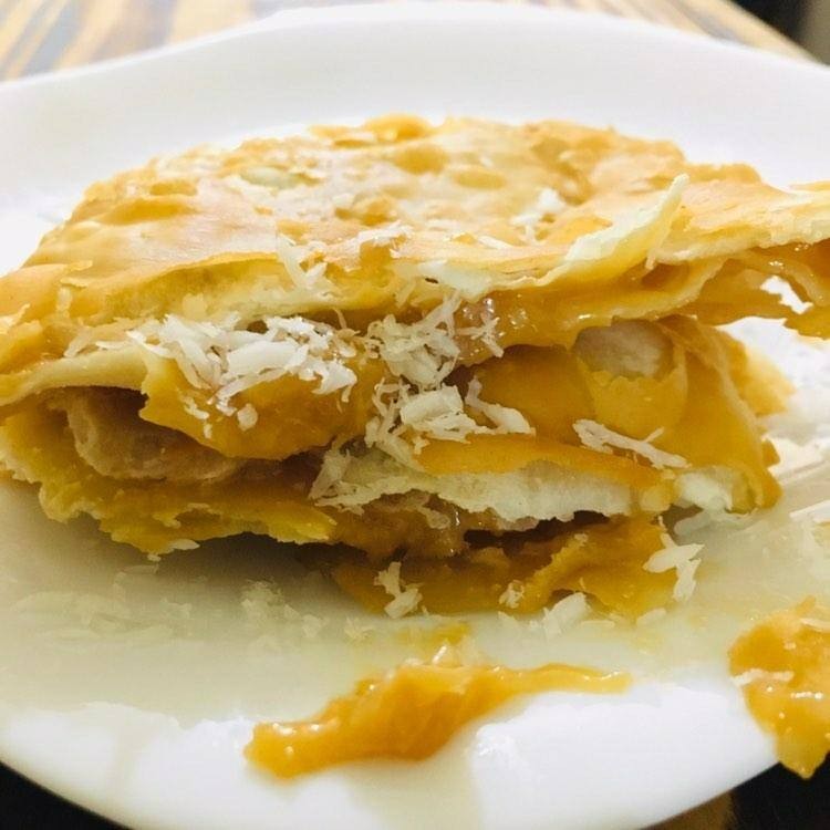 Delicioso pastel com doce de leite e côco ralado