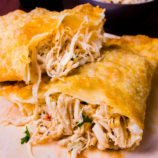 Delicioso frango desfiado com o melhor queijo mussarela.