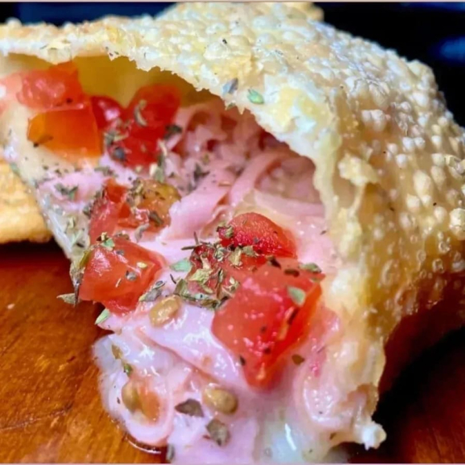 Delicioso pastel de calabresa defumada com o melhor queijo mussarela