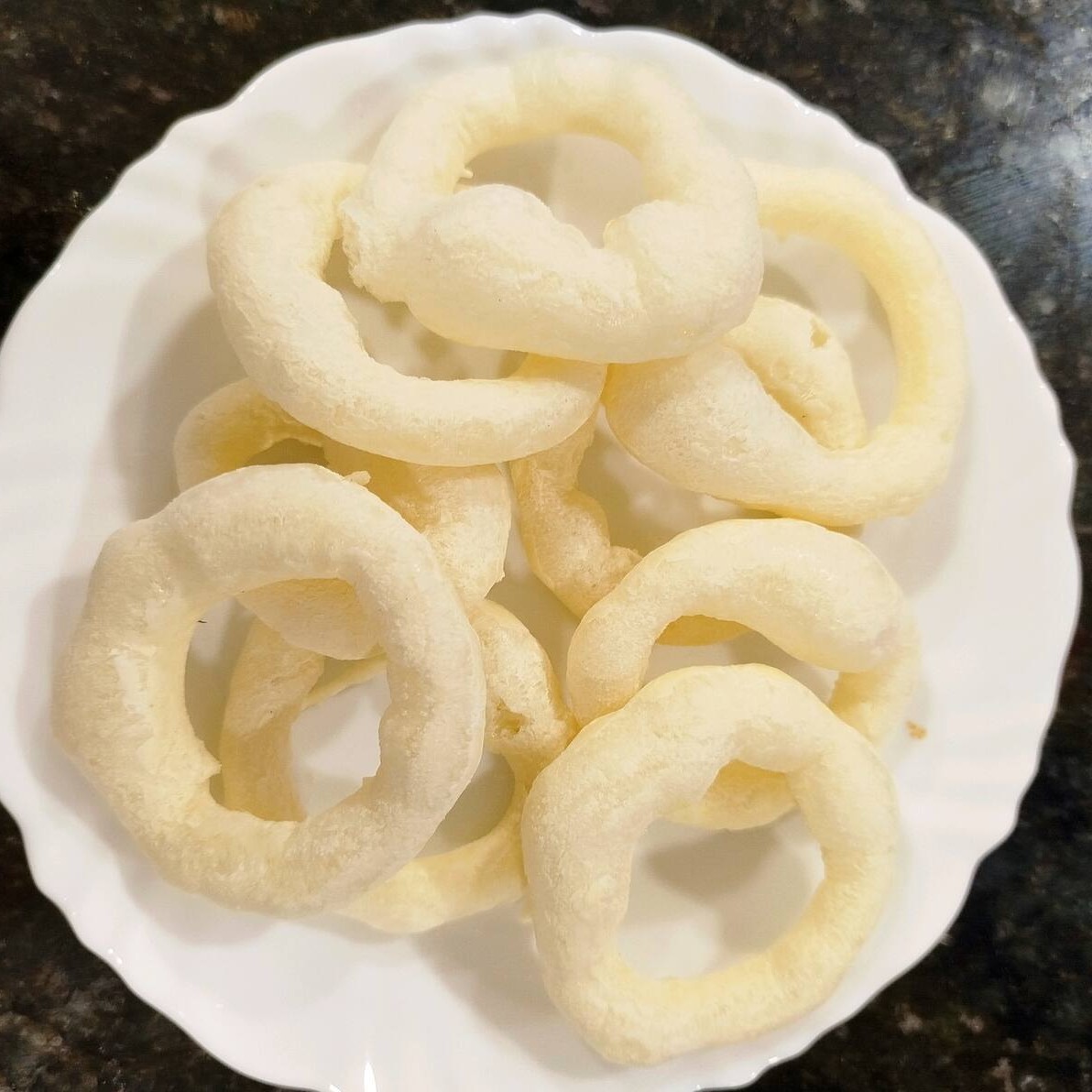 Polvilho azedo,ovos,óleo soja,água,sal e essência de queijo