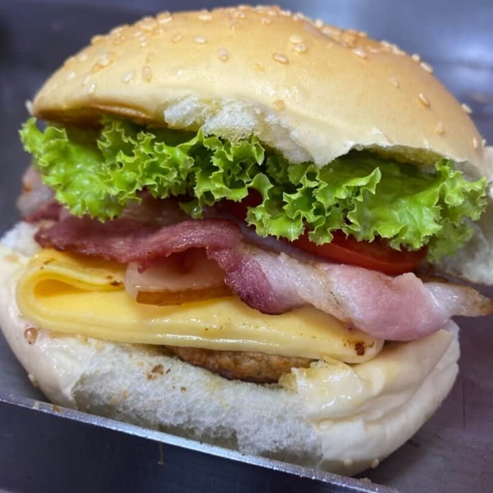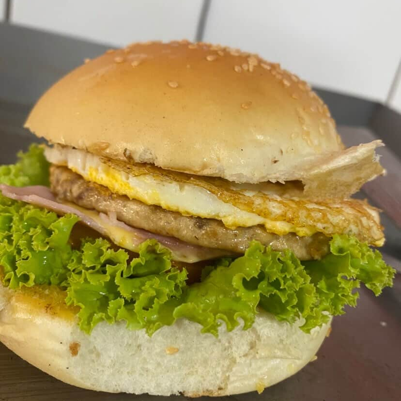 pão, carne, ovo, calabresa, bacon, queijo, presunto, alface, tomate