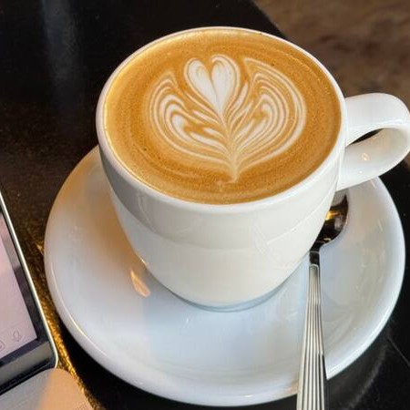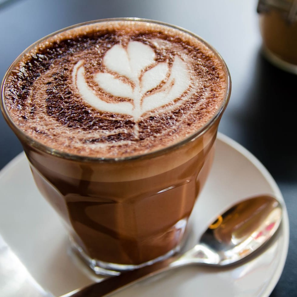 Uma combinação deliciosa de café quentinho expresso com leite vaporizado e espuma de leite.