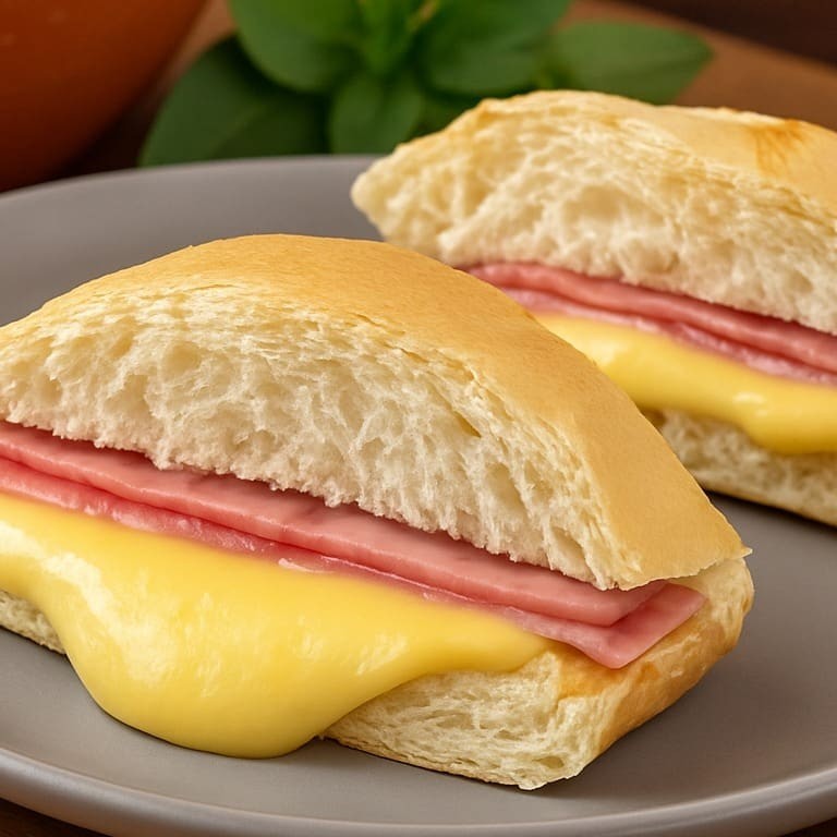 Delicioso mistão no capricho! Feito com fatias generosas de queijo mussarela e presunto, tudo isso no pão francês quentinho e levemente crocante.