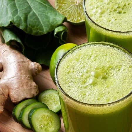 Uma combinação poderosa e fresca de ingredientes 100% naturais, selecionados para purificar, hidratar e recarregar seu organismo. Aqui preparamos com couve, gengibre e limão.