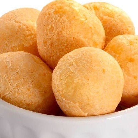 Uma explosão de queijo em cada mordida! Crocante por fora, macio e levemente elástico por dentro, nosso mini pão de queijo é feito com queijo fresco e polvilho azedo.