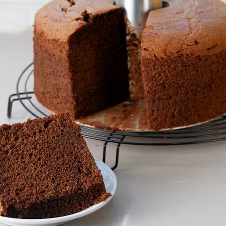 Nosso bolo de chocolate é preparado com cacau pó e chocolate derretido, resultando em uma massa escura, profunda e intensamente úmida.