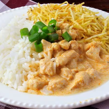 Opções disponíveis: Frango, Bacalhau e Camarão.