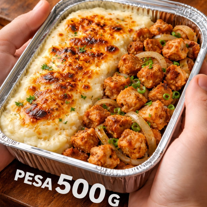 Pirão De Aipim Com Queijo Maçaricado + Frango Frito Acebolado
