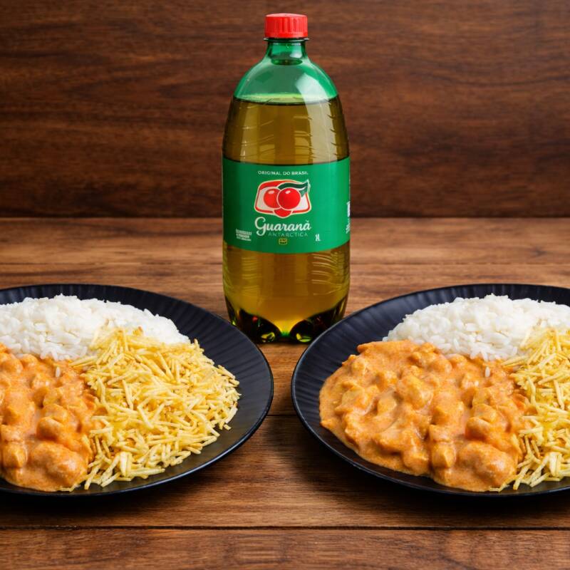 Uma refeição completa e deliciosa: 2 Estrogonofes + Refrigerante de 1 litro.