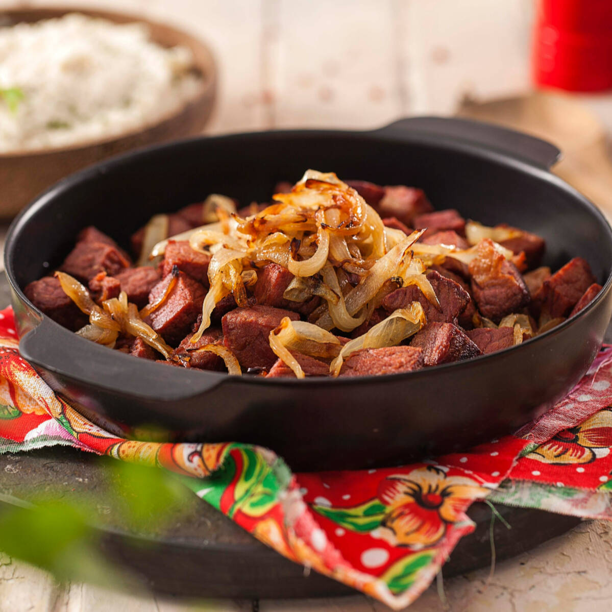 Carne do sol de excelência, em cubos. Escolha os acompanhamentos e desfrute da praticidade e sabor na sua casa. Escolha a porção que melhor te atende (1 ou 2 pessoas).