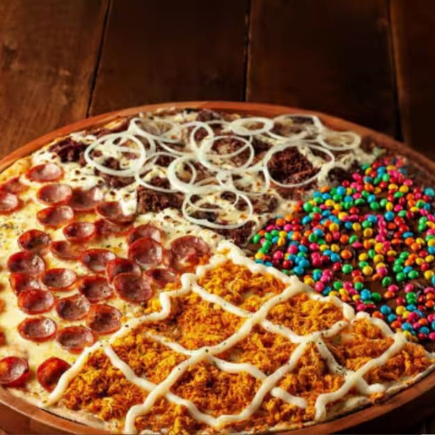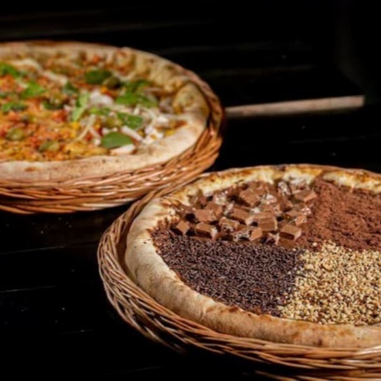 Super combo para compartilhar! 1 Pizza grande até 2 sabores + 1 Pizza doce pequena com sabor a sua preferencia.