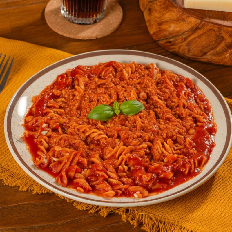Um autêntico Fusilli italiano envolvido em um saboroso molho bolonhesa, feito com carne moída selecionada, trazendo a tradição e o sabor da Itália.