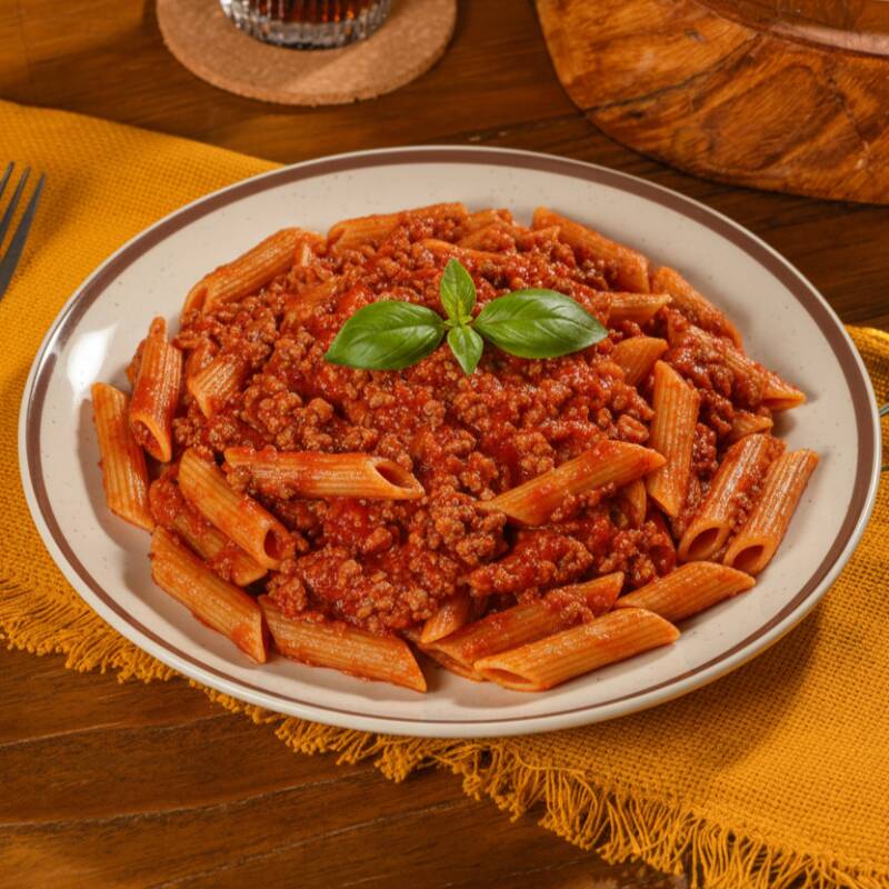 Penne integral cozido à perfeição, envolvido em um autêntico molho bolonhesa italiano, proporcionando uma refeição saudável e saborosa, sem abrir mão da tradição.