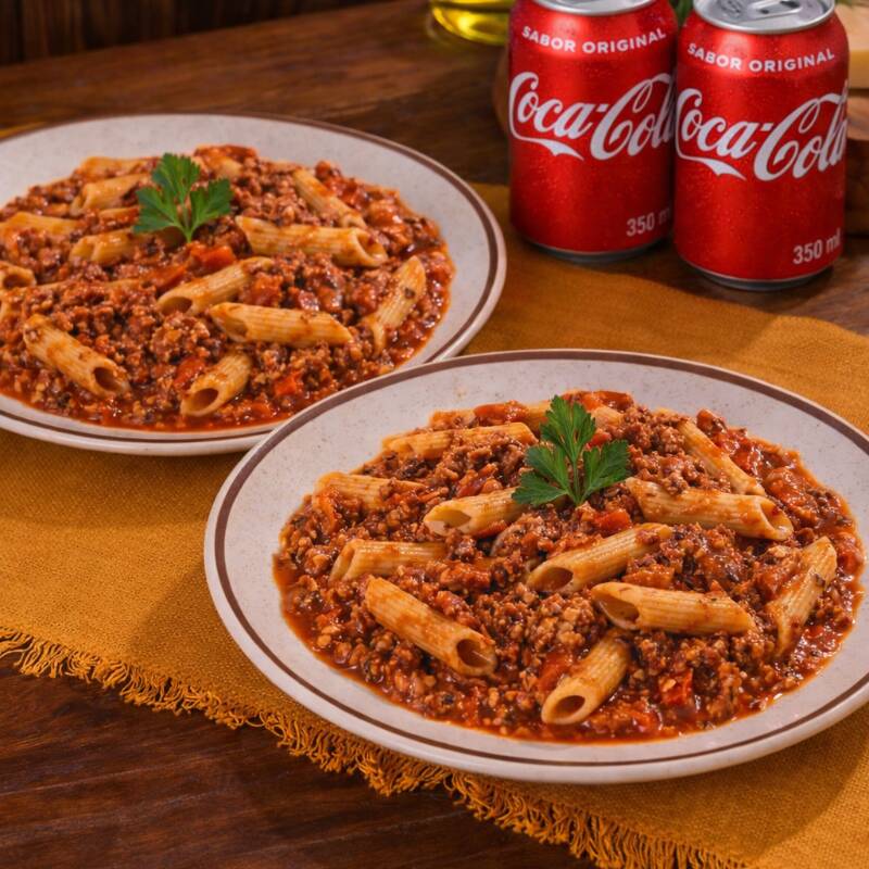 2 Pote Médio do Penne saboroso e cozido à perfeição, acompanhado por um delicioso molho bolonhesa e incrementado com bacon crocante, criando uma mistura irresistível de sabores e texturas. E para acompanhar 02 refrigerante lata (350ml) **fotos meramente ilustrativas - devido ao acondicionamento em embalagem e transporte o produto poderá não ter a mesma aparência da foto.