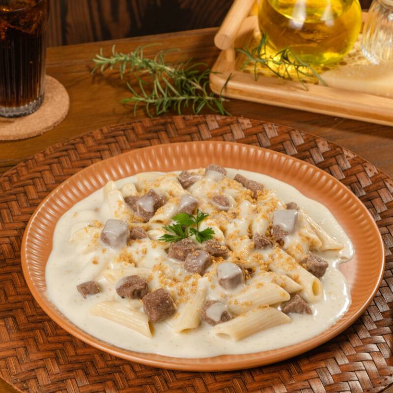 Delicioso Penne envolvido em um saboroso molho à base de Alcatra, Catupiry e Alho frito, criando uma combinação de sabores intensos e irresistíveis.