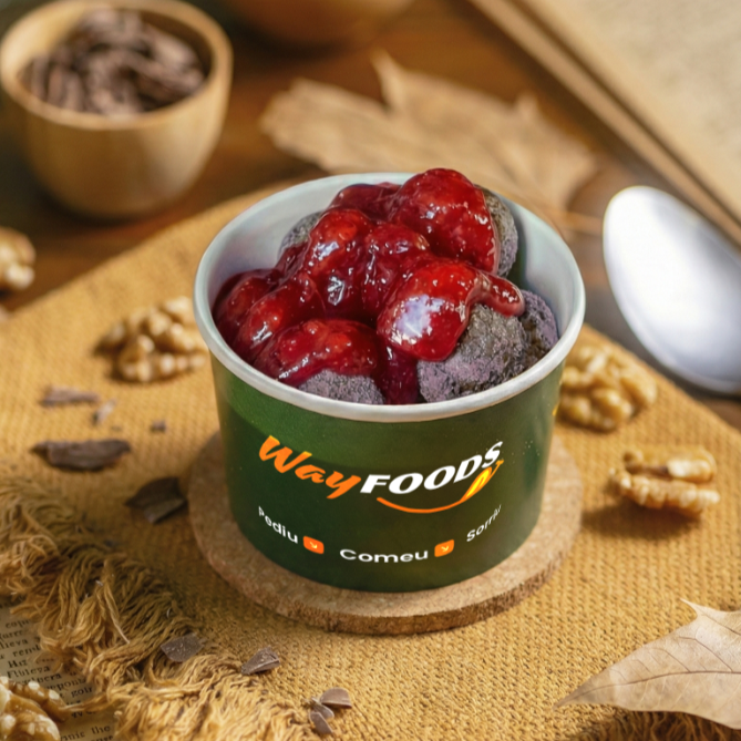 Nhoque inovador e delicioso feito com biscoito, coberto com uma saborosa geleia de morango artesanal, proporcionando uma combinação perfeita de sabores doces e frutados, ideal para quem procura uma sobremesa diferente e tentadora.