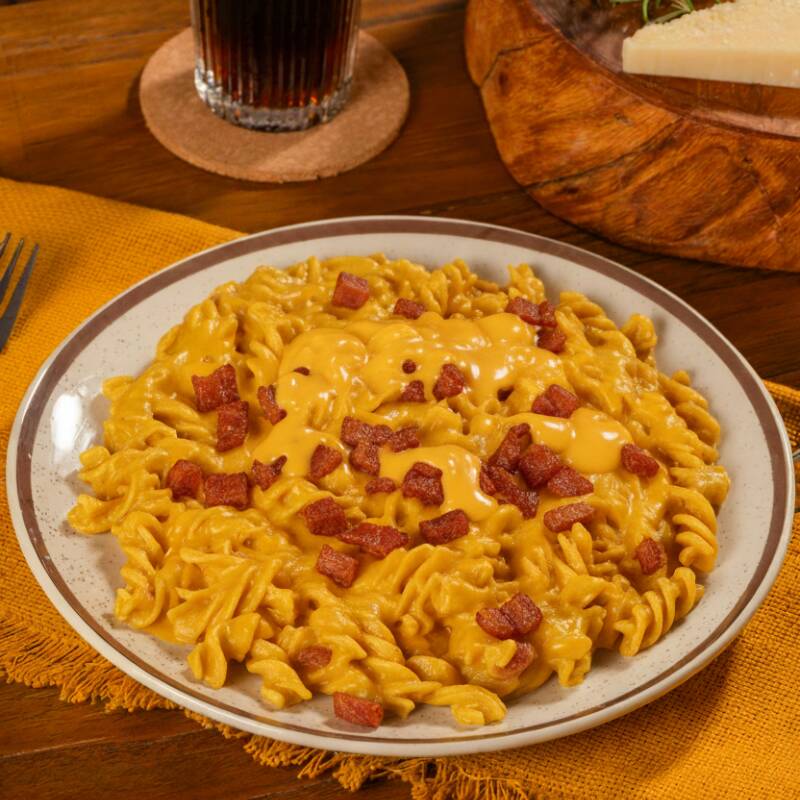Fusilli Ao Molho De Cheddar Com Bacon E Calabresa