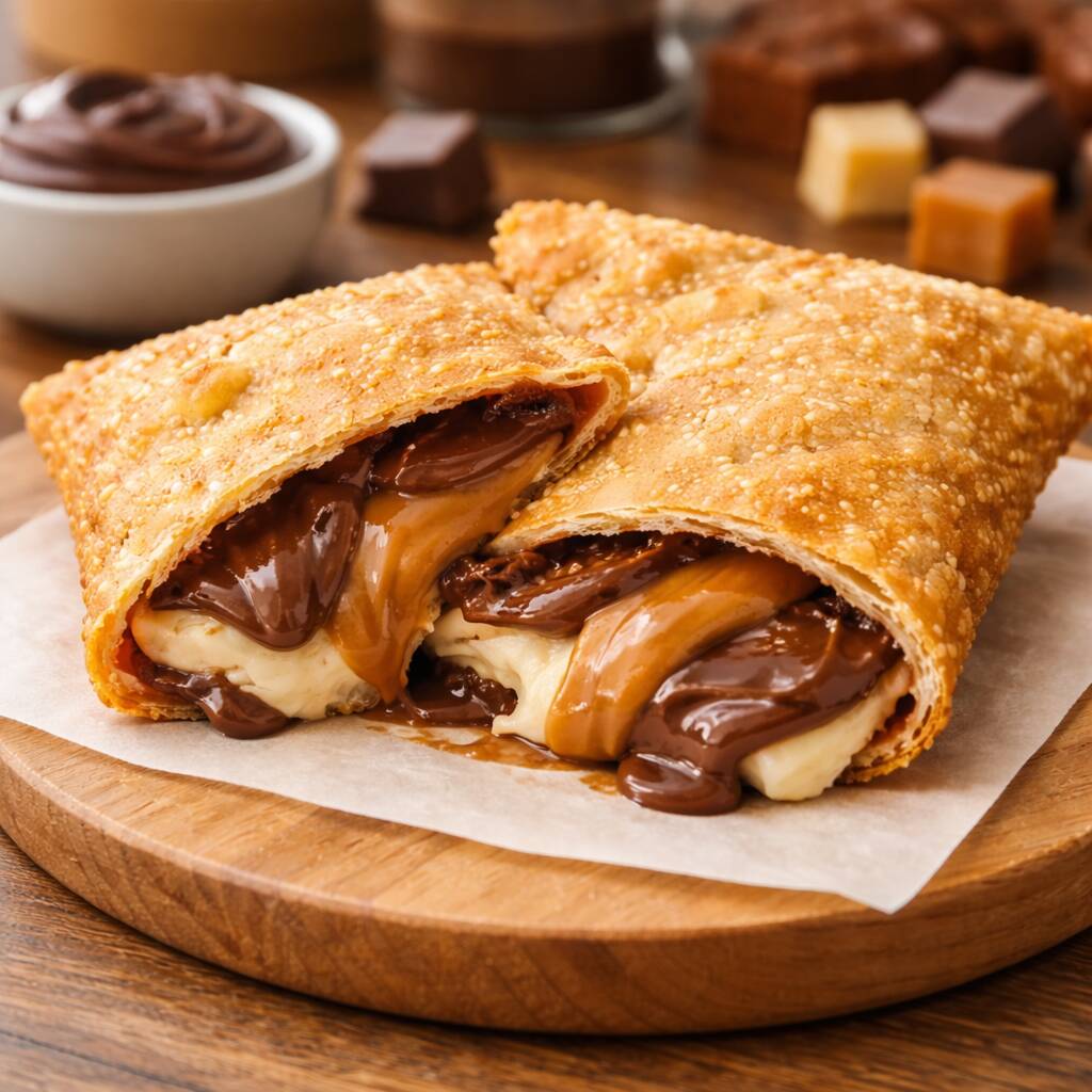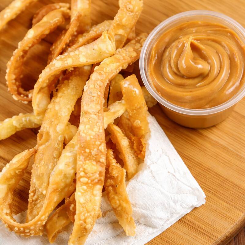 Deliciosas tirinhas de massa de pastel frita, super crocantes e douradinhas, servidas com cremoso doce de leite para mergulhar. Um lanche doce perfeito para quem ama crocância com um toque irresistível de sabor.