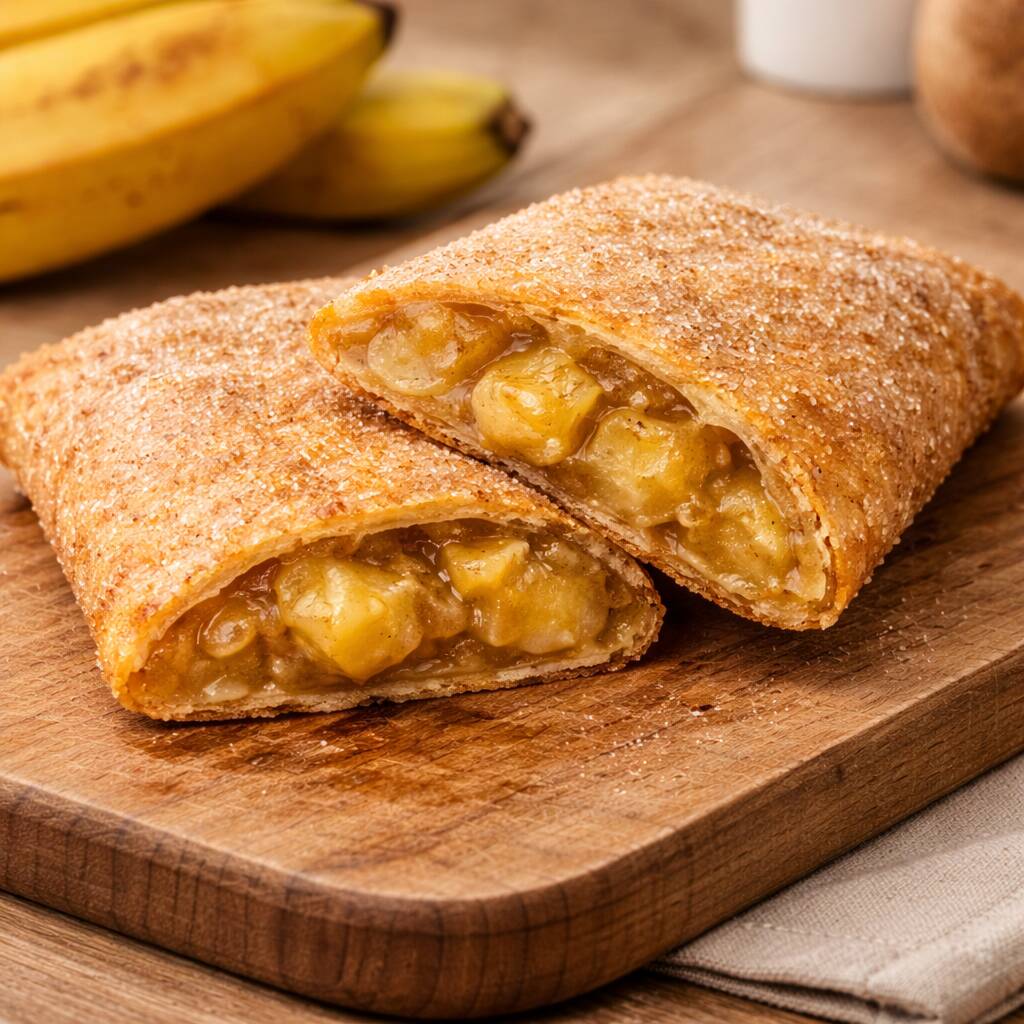 Pastel doce de 16cm recheado com banana cremosa e envolvido no clássico toque de açúcar com canela. Massa crocante por fora e recheio macio e quentinho por dentro. Uma combinação irresistível!