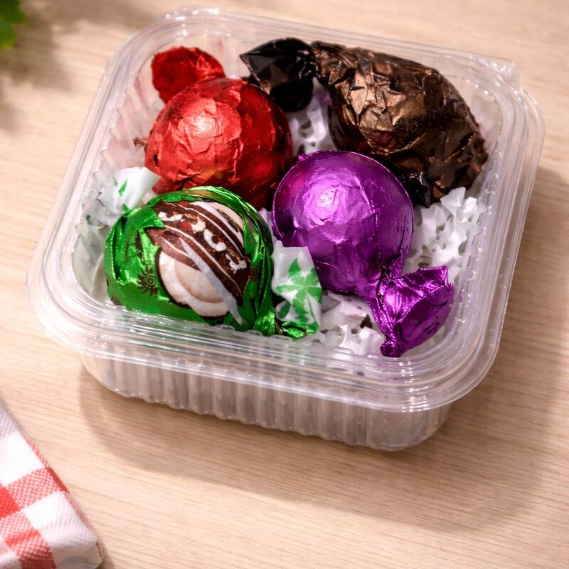 Delicioso kit com 4 trufas artesanais, perfeito para adoçar o seu dia! Feitas com chocolate cremoso e recheios especiais. Sabores do kit: 🍓 Morango – embalagem vermelha, doce e irresistível 🥥 Coco – embalagem verde, suave e tropical 🌿 Menta – embalagem rosa, refrescante e marcante 🌰 Nozes – embalagem escura, sabor intenso e sofisticado