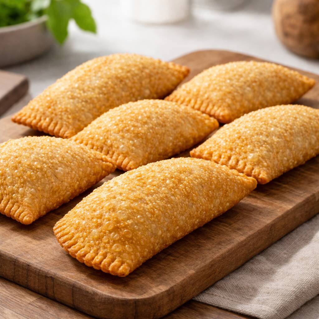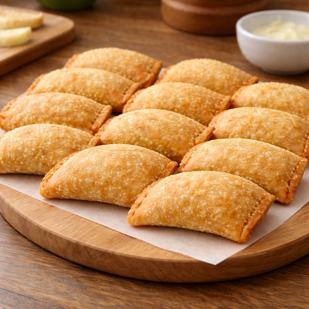 Massa à base de farinha de trigo, leite, manteiga, ovos e temperos. Recheio de queijo muçarela. Empanadas na farinha de rosca e fritas em óleo vegetal.