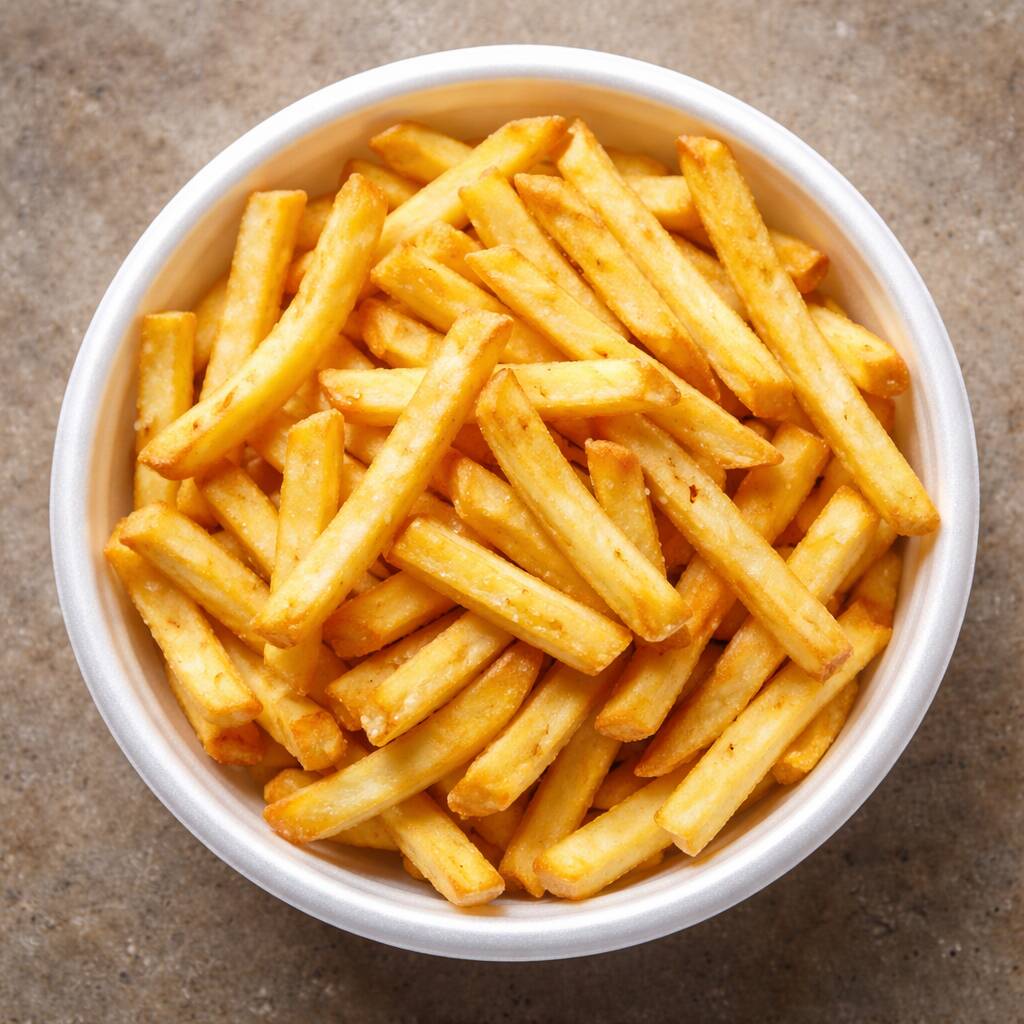 Porção média de batata frita douradinha e crocante por fora, macia por dentro. Servida quentinha, sequinha e fresquinha, perfeita para acompanhar seu lanche ou matar a fome na medida certa. Ideal para quem quer qualidade e sabor em uma porção equilibrada 😋