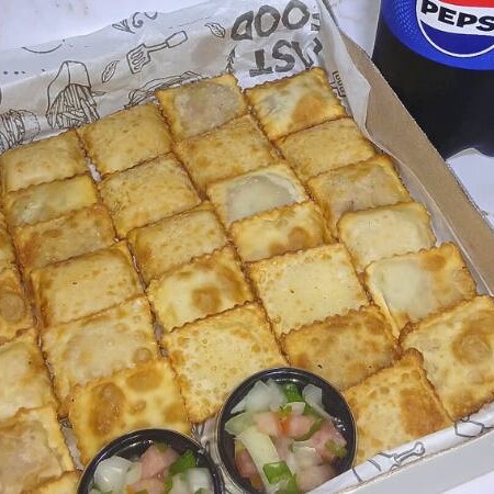 São 30 mini pastéis sortidos (queijo e presunto, calabresa, carne moída, frango), fritos na hora, super crocantes por fora e recheados por dentro, acompanhados de 2 molhos da casa para dar aquele toque especial e 1 Pepsi de 1 litro bem gelada para completar a experiência. Ideal para 1 ou 2 Pessoas Sabores enviados conforme disponibilidade.