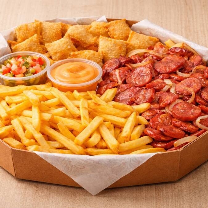 O combo ideal para quem quer quantidade, variedade e muito sabor São 40 mini pastéis sortidos (queijo e presunto, calabresa, carne moída, frango), sequinhos, crocantes e recheados de verdade, acompanhados de 600g de batata frita, dourada no ponto certo e extremamente crocante + 2 molhos da casa. Sabores enviados conforme disponibilidade. Ideal para 1 ou 2 Pessoas