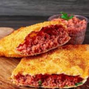 Pastel de carne com calabresa, uma combinação robusta e saborosa que satisfaz os amantes de sabores intensos.