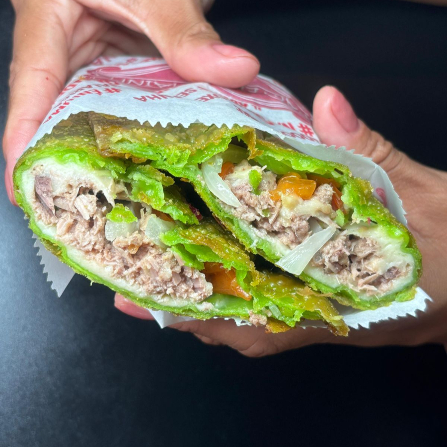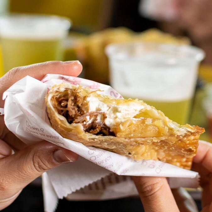 Carne seca, queijo coalho, cream cheese e pimenta biquinho. Atenção alérgicos: contém derivados do leite da vaca.