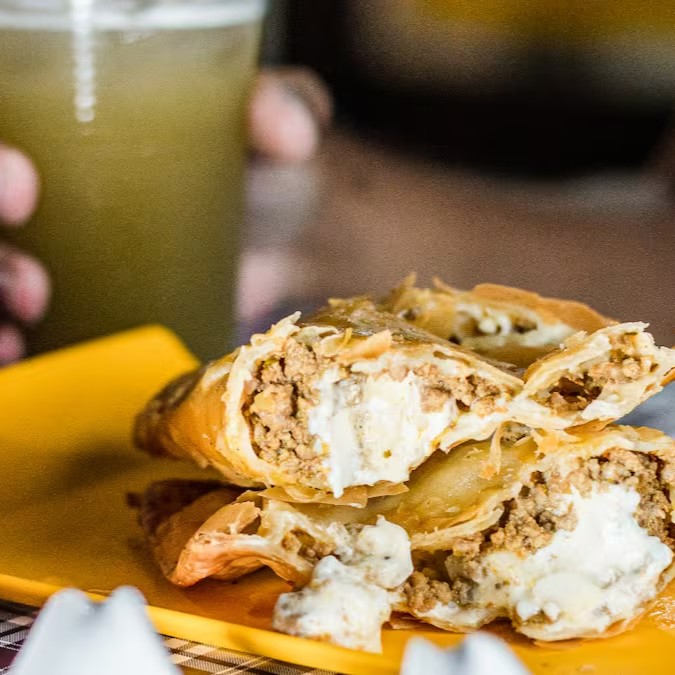 Carne seca, queijo mussarela e banana da terra frita. Atenção alérgicos: contém derivados do leite da vaca.