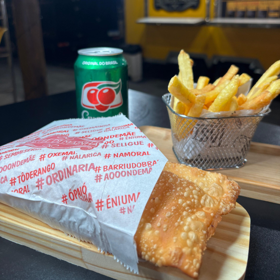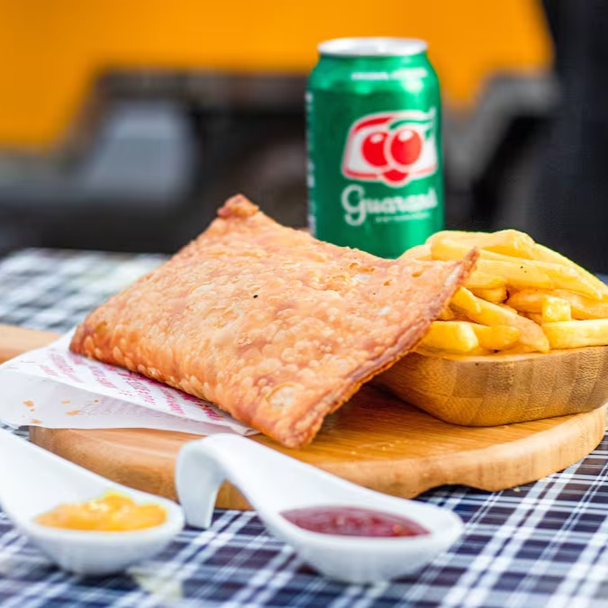 01 pastel desta categoria + acompanhamento (batata frita ou churros) + bebida