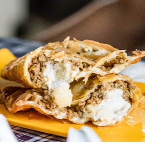 Carne do sol desfiada, queijo coalho e banana frita. Atenção alérgicos: contém derivados do leite da vaca.