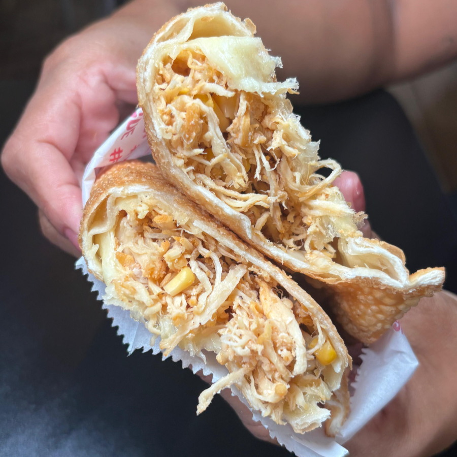 Frango desfiado, queijo mussarela e milho. Atenção alérgicos: contém derivados do leite da vaca.