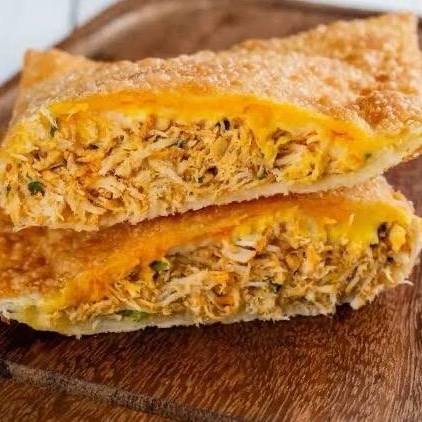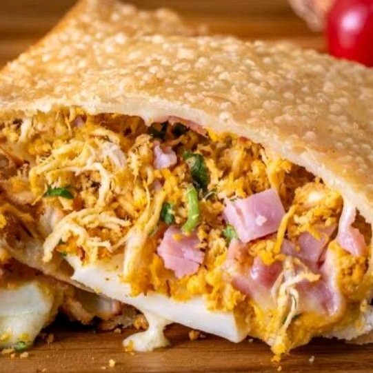 O sabor que vai te conquistar no primeiro pedaço! Massa crocante, recheada com frango desfiado temperado na medida certa e aquele cheddar cremoso que derrete na boca .