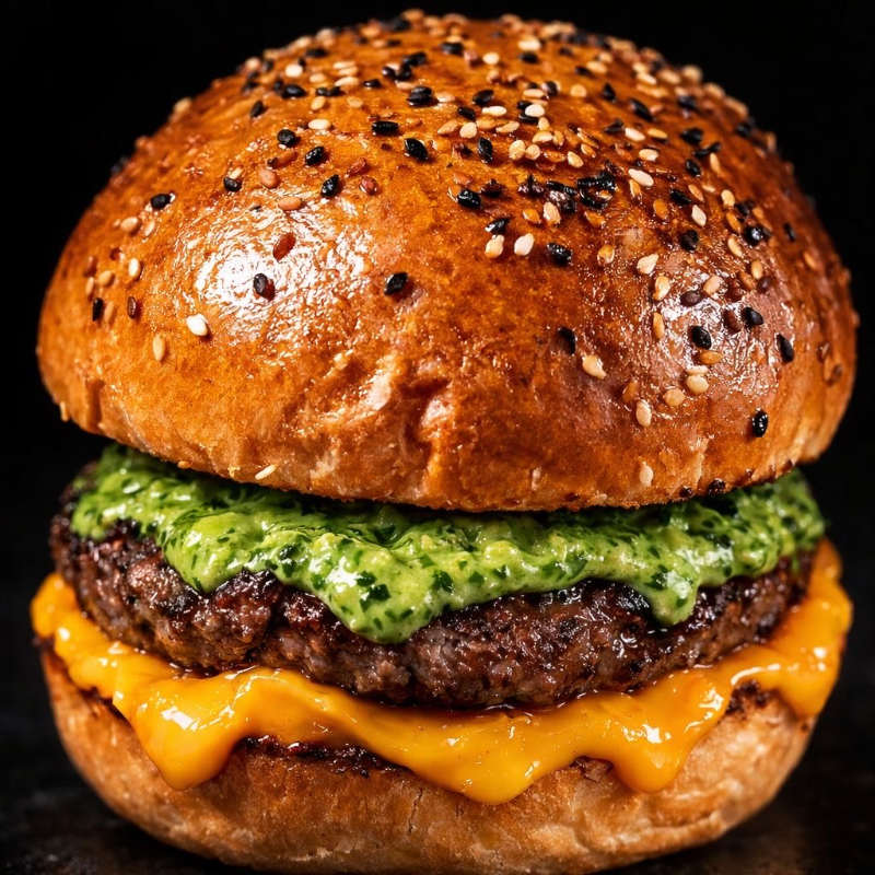 Pão , Blend de Carne (100g), Queijo Cheddar Cremoso, Cebola Caramelizada e o tão amado Molho Verde.