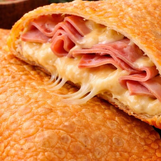 Pastel de misto com massa crocante por fora e leve por dentro, recheado na medida certa com presunto macio e queijo derretido. Sabor clássico, simples e certeiro: salgado na medida, cremoso por dentro e irresistível a cada mordida. Obs: Salada Grátis Opcional.