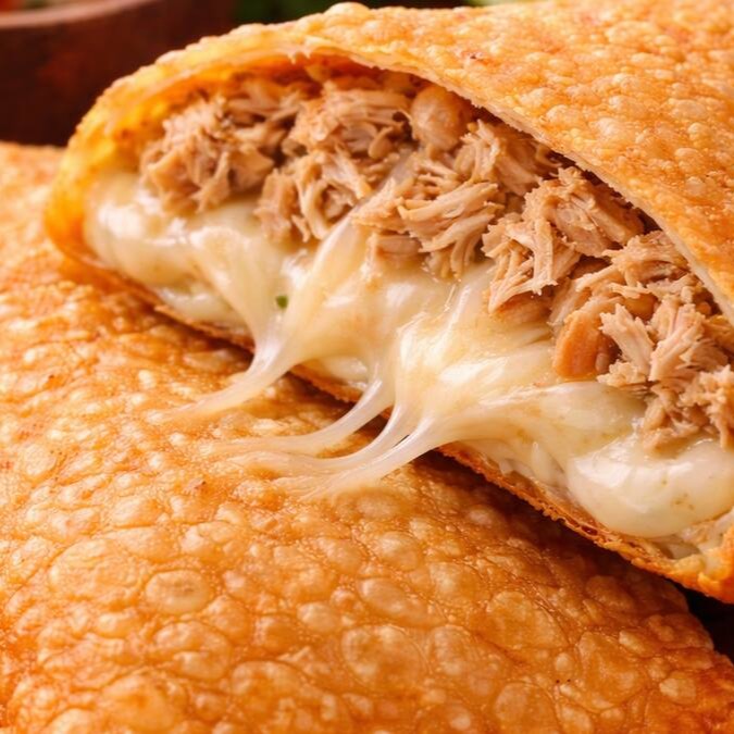 Pastel de frango com Catupiry com massa crocante e dourada, recheado com frango bem temperado e Catupiry super cremoso, trazendo um sabor suave, equilibrado e irresistível.