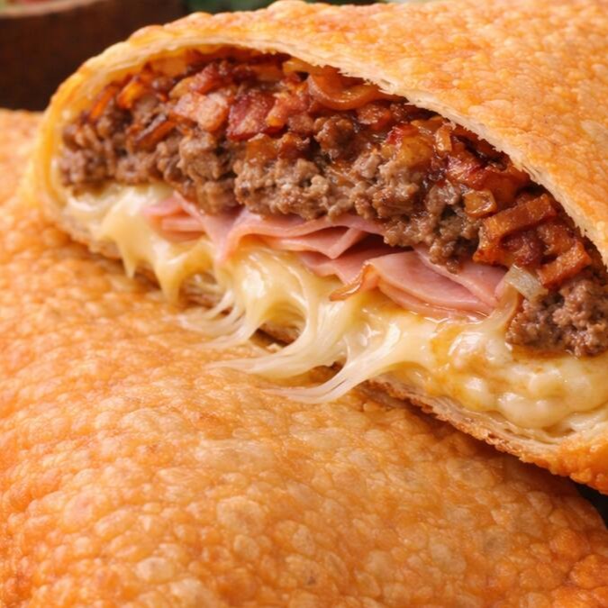 Pastel de X-tudo com massa crocante e dourada, recheado com uma mistura caprichada de ingredientes clássicos, juntando tudo que há de melhor, entregando um sabor intenso, cheio e sem economia. É o pastel pra quem não gosta de pouco: pesado, completo e satisfatório