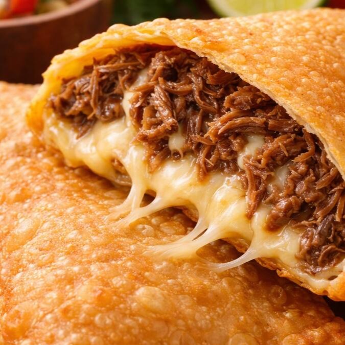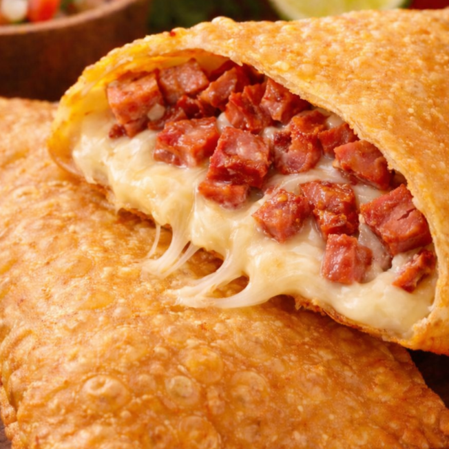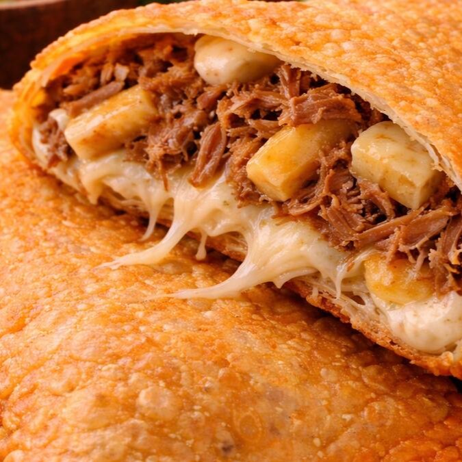 A combinação perfeita entre salgado e adocicado! Charque desfiada bem temperada, queijo derretendo e banana-da-terra macia que traz aquele toque especial. Crocante por fora, surpreendente por dentro!