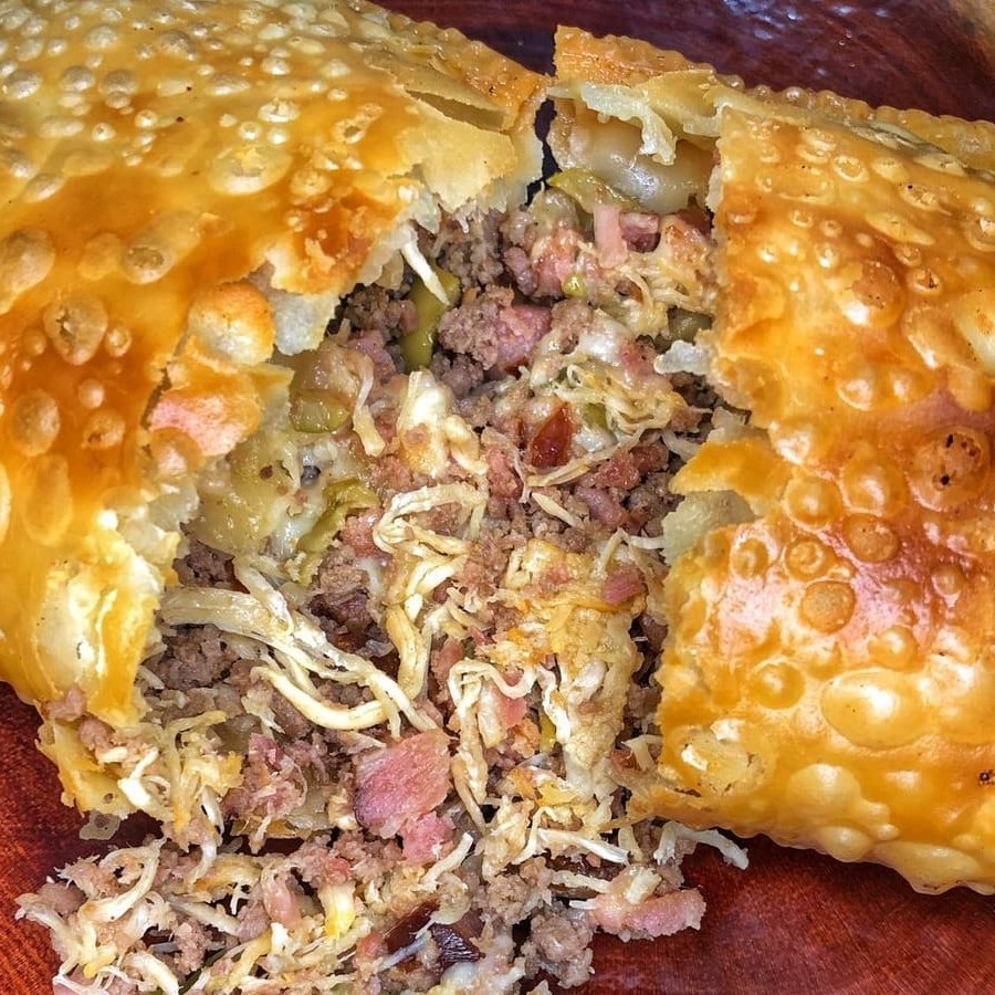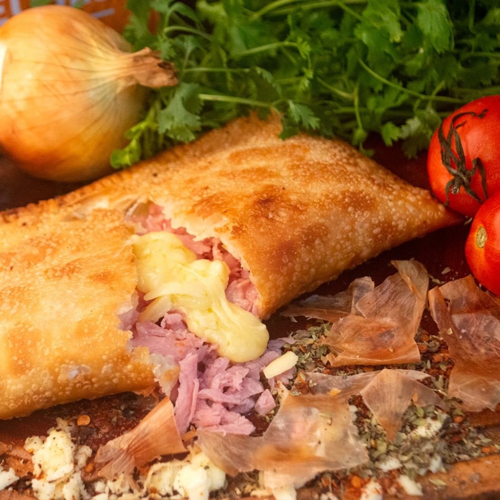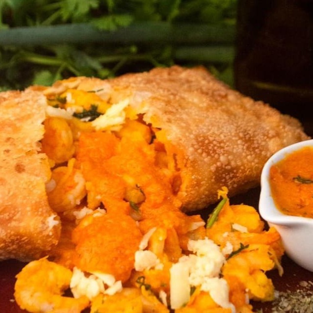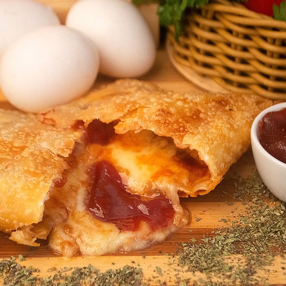 17cm de pastel de Camarão e Queijo: Uma explosão de sabores! Camarões suculentos, queijo derretido e massa crocante.